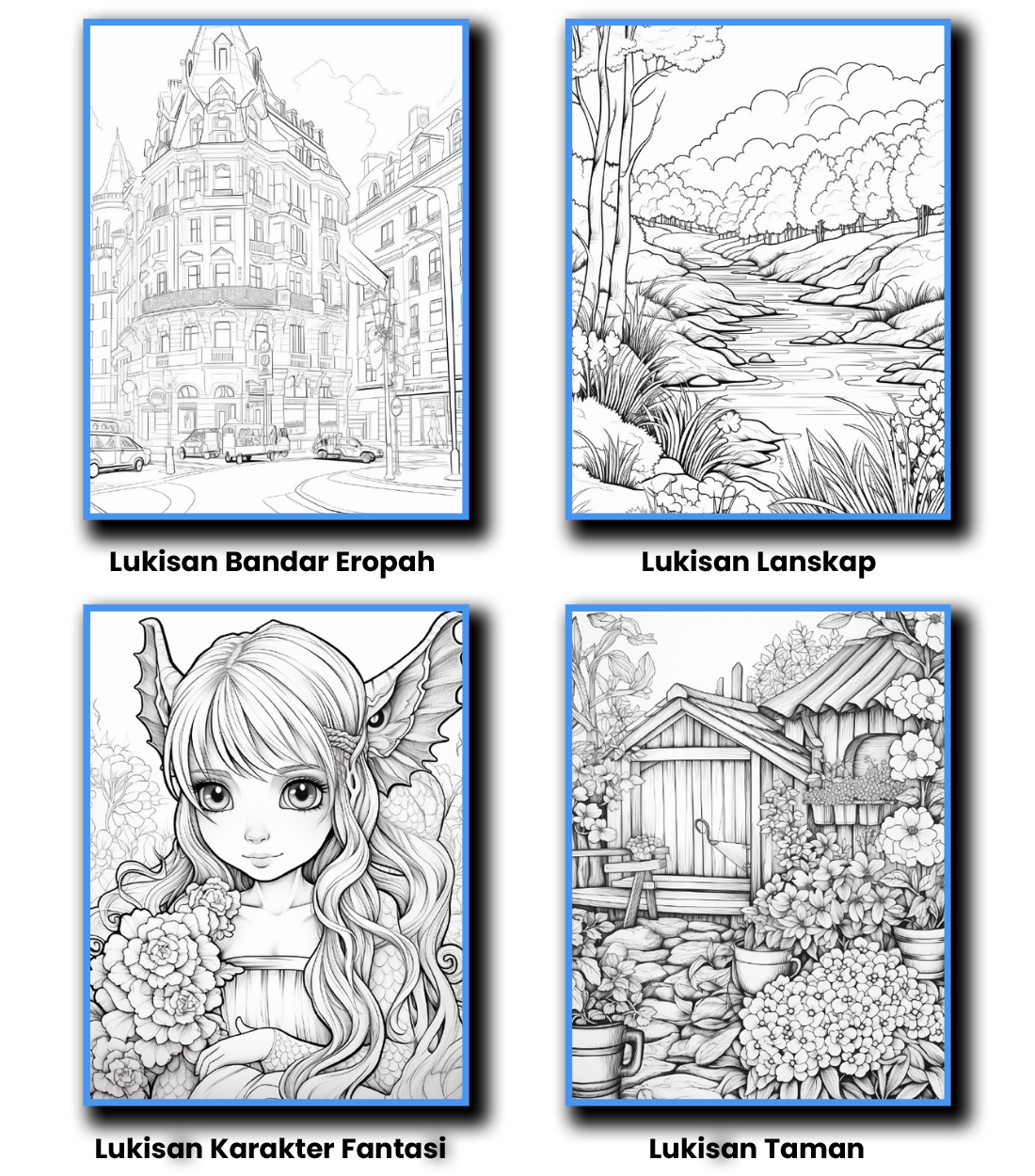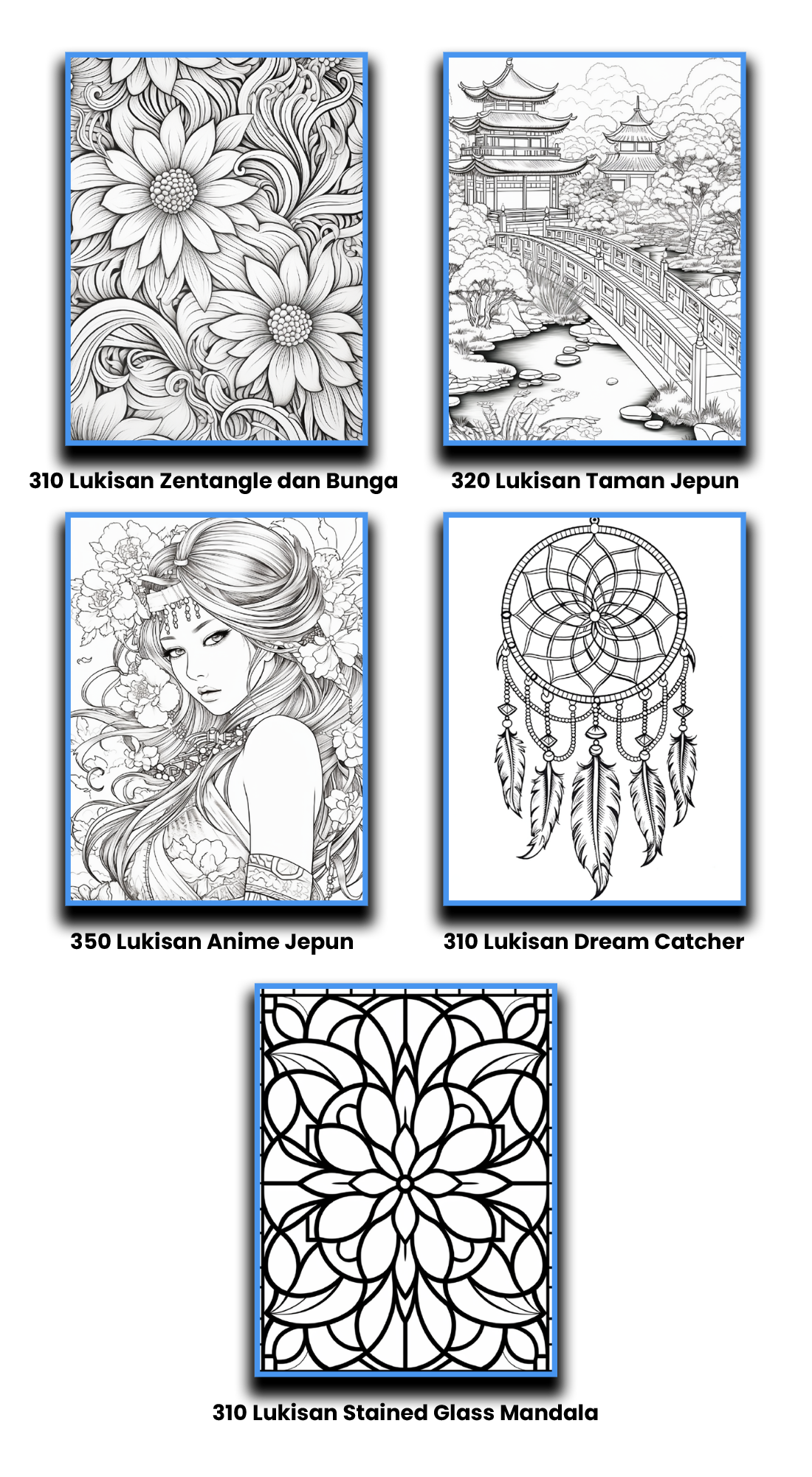 Mempunyai lebih 6,000 mukasurat, untuk menyerlahkan bakat dan mengurangkan stress anda. Anda cuma perlu download, print dan mewarna sahaja.