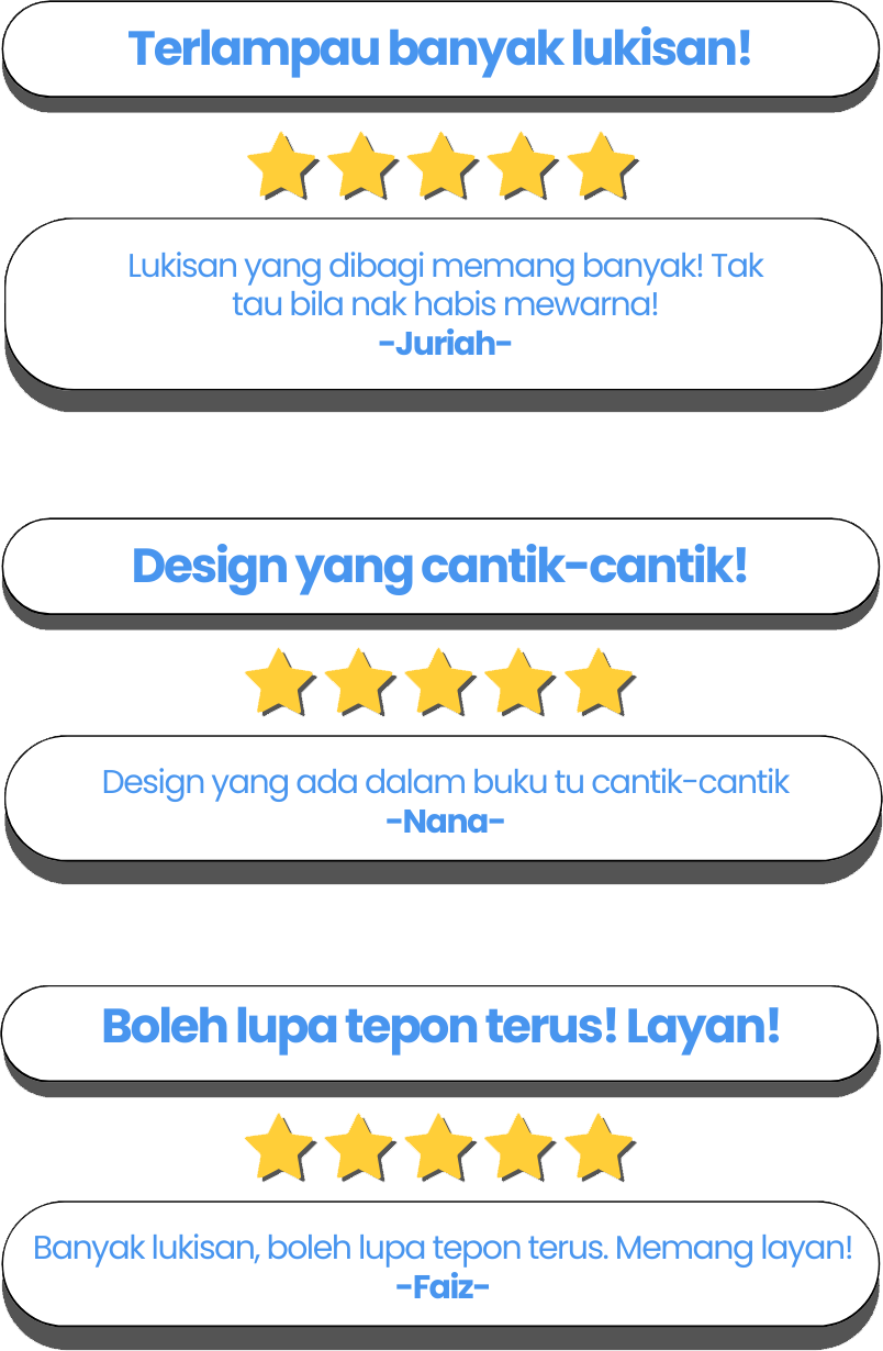 Buku mewarna digital dari Hizer.my. Mempunyai